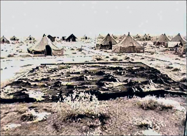 The rock-lined street layout of Camp Iron Mountain typifies the divisional campsites with its headquarters circle surrounded by a semicircular road off which the administrative tents were arranged.