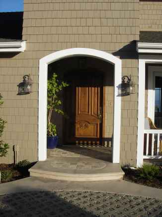 shingles trimmed with bars-rafters and generous casing ant attention to